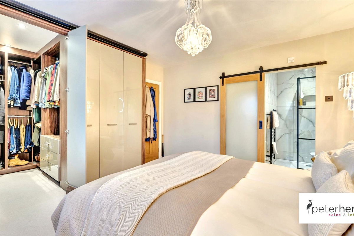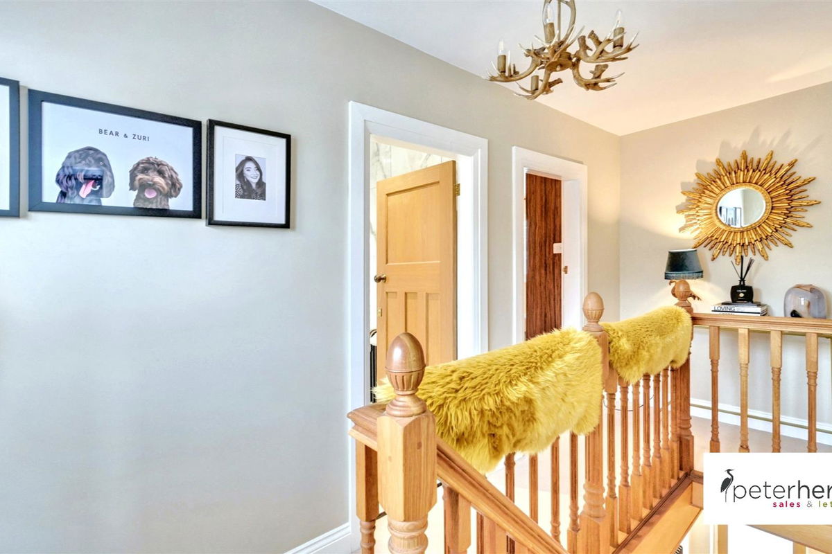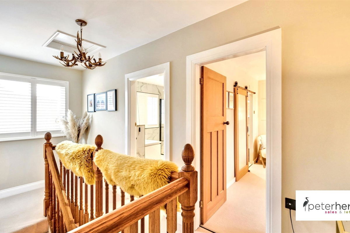 With bespoke fittings throughout and features of note include cast iron burning stove to living room, walk in wardrobe and en-suite to the principal bedroom, solid oak flooring to the ground floor and plantation shutters to most windows. Internal accommodation comprises entrance porch, reception hall with ground floor WC, lounge, living kitchen with integrated appliances and island, three first floor bedrooms and a bathroom, whilst it also benefits from gas central heating, UPVC double glazing and externally boasts attractive landscaped gardens to the front and side which enjoy a westerly aspect and a double drive to the rear with garage.