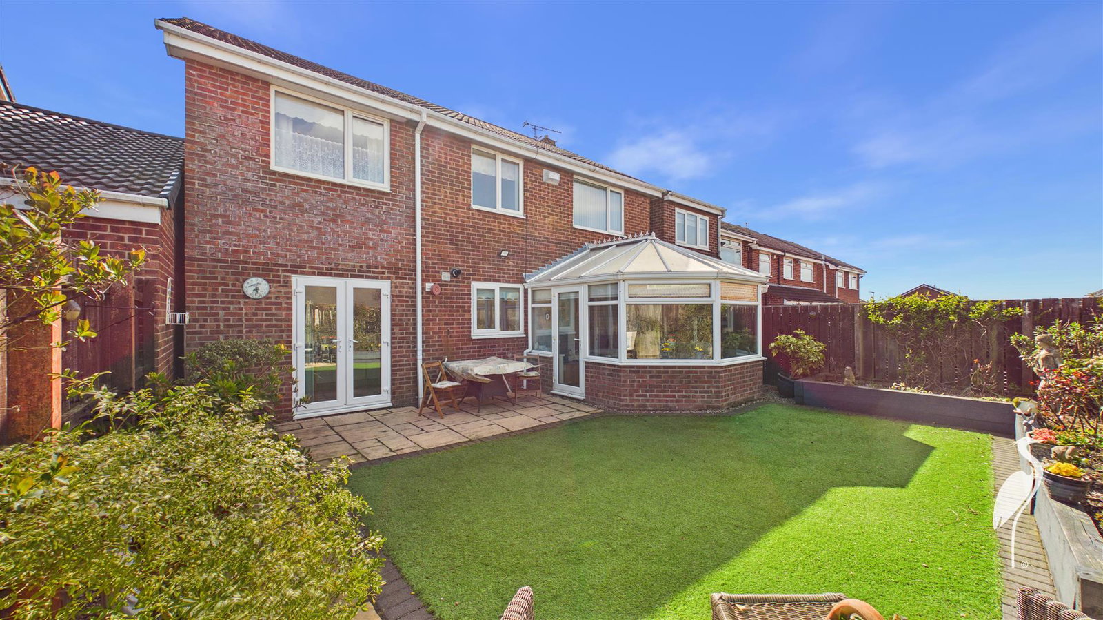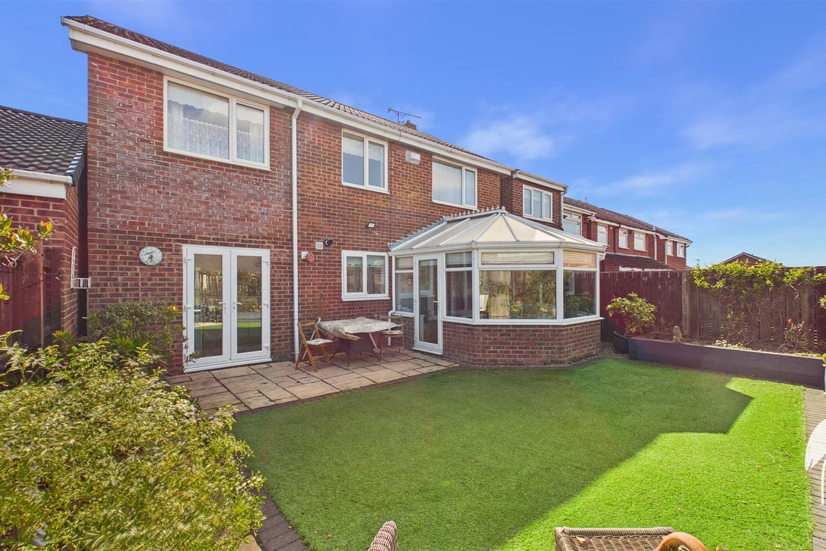 An extended four bedroom link detached house, providing spacious and well-presented accommodation, occupying a delightful cul-de-sac position within this popular residential area. Internally briefly comprising of an entrance porch, hall with a cloakroom/wc and staircase to the first floor, a generous lounge, conservatory and a superb modern kitchen / diner. To the first floor there are four well-proportioned bedrooms and a family bathroom/wc, incorporating a shower cubicle. Externally there is a block-paved, double width driveway, an integral single garage and to the rear a superb garden with artificial grass, a patio area and planted borders. This ideal location provides access to a range of local amenities as well as providing excellent links to Doxford International Business Park, Sunderland City Centre and major road connections. We highly recommend early viewing, to appreciate the accommodation on offer.