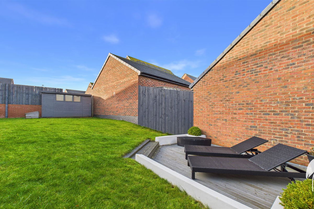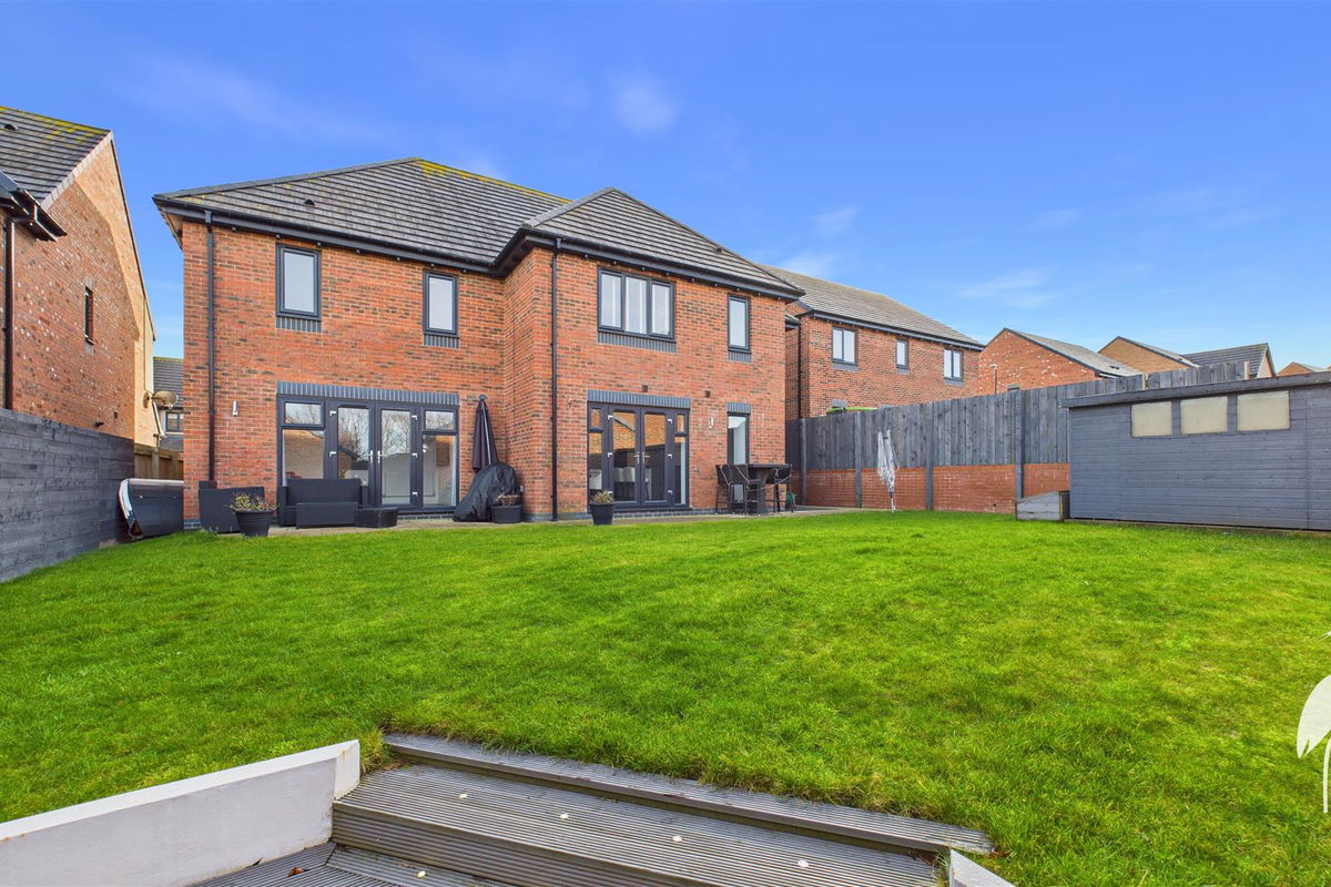 A stunning five bedroom detached home, featuring a stylish contemporary interior with generously proportioned rooms, situated within the highly sought after Burdon Rise development. Internally the immaculate accommodation is accessed via a reception hall with staircase to the first floor and a cloakroom/wc. There is an attractive lounge to the front with a box bay window, whilst to the rear there is a fabulous high specification dining kitchen that opens through to a superb family room with doors out to the garden. The luxury kitchen is fitted an excellent range of units, an island with breakfast bar and a selection of integrated appliances. Completing the ground floor is a useful utility room. To the first floor there is generous landing and an exceptional principle bedroom with dressing area and modern en-suite shower room/wc. There is a family bathroom/wc and four further well-proportioned bedrooms, two with en-suite shower room/wc’s. Externally there is a garden to the front with a block-paved driveway providing pff street parking and access to the integral double garage with a remote control access door. To the rear is a delightful garden with a lawn, patio and decked area. This location is ideal for local amenities, shopping facilities, schools and transport links including major road networks with the A19. We highly advise arranging a viewing to appreciate the quality of accommodation this remarkable home has to offer.