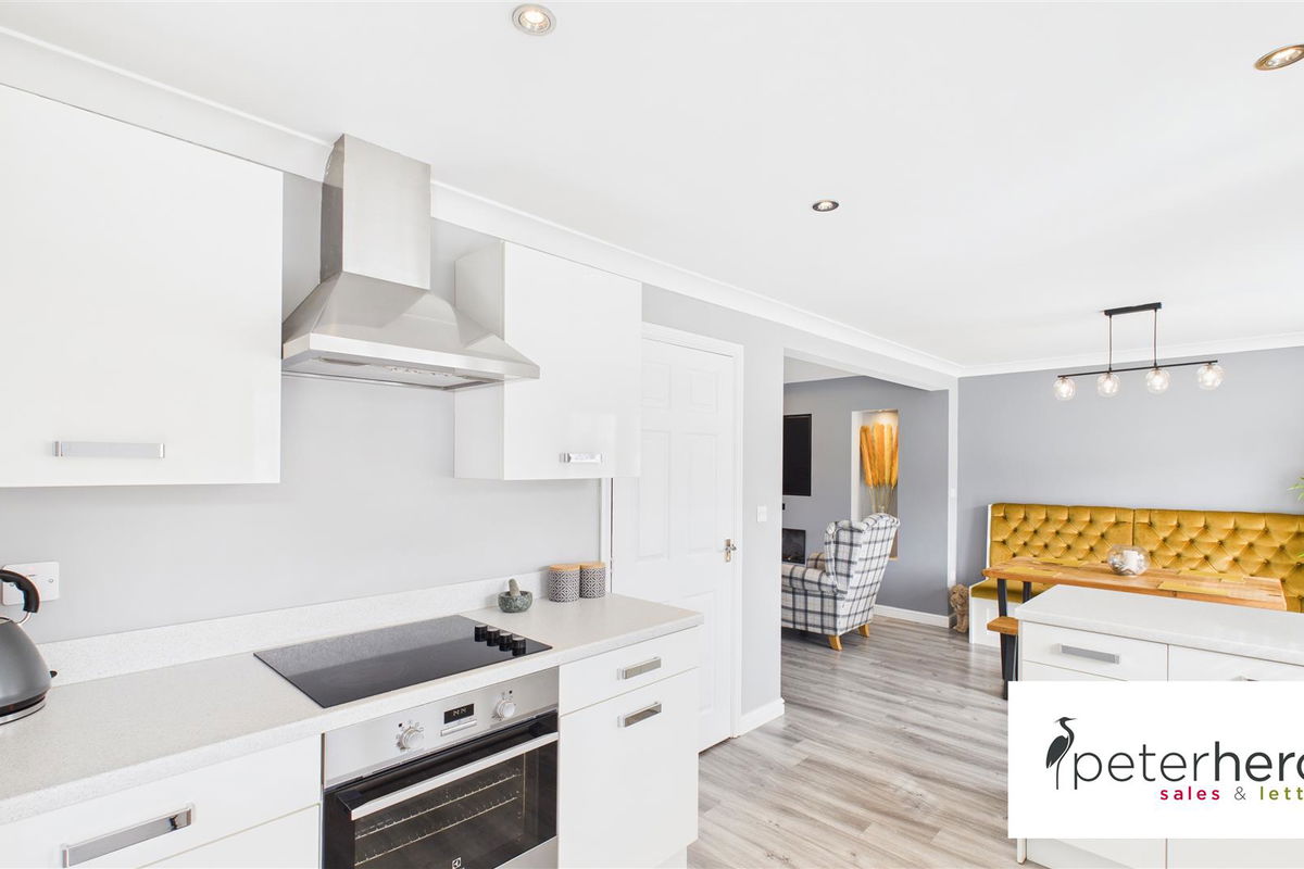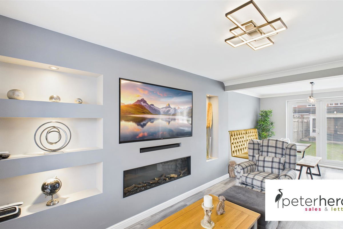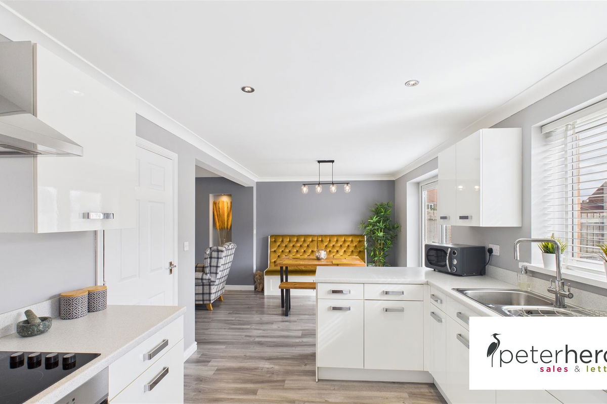 This exceptional double fronted, four bedroom detached house features a beautifully remodelled, stylish interior. Internally the immaculate accommodation includes a hall with a staircase to the first floor, a superb lounge that is open plan with a fabulous dining kitchen, fitted with a range of modern units and French doors to the rear garden. There is a versatile room, currently utilised as a snug, a utility and a cloakroom/wc, completing the ground floor. On the first floor, the main bedroom has a contemporary en-suite shower room/wc, there are three further bedrooms and a modern family bathroom/wc. Externally there is driveway parking to the rear, along with a single garage and to the rear, a wonderful, generous garden with a lawn and a decked area. The property enjoys a pleasant aspect to the front, overlooking a green within this attractive modern development, well positioned for local amenities as well as offering links to major road connections. Viewing is highly recommended!
